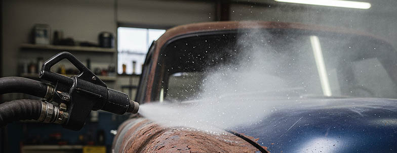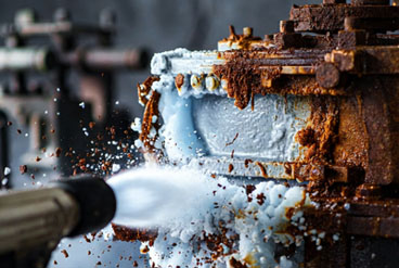 Trockeneisstrahlen erzeugt eine Wolke aus Kohlendioxid-Gas und -Staub,